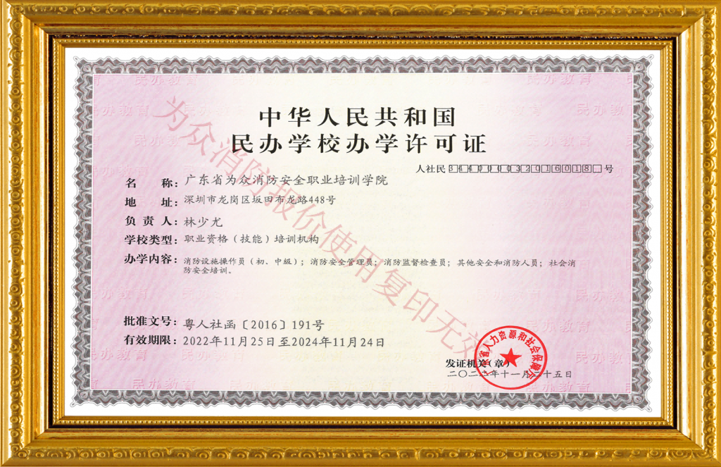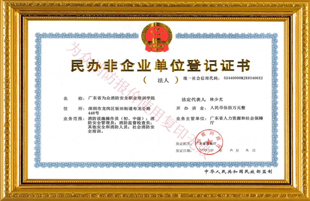 廣東省為眾消防安全職業(yè)培訓(xùn)學(xué)院是經(jīng)廣東省人力資源和社會(huì)保障廳批準(zhǔn)、省民政廳核準(zhǔn)登記、國(guó)家認(rèn)定的一所省級(jí)消防職業(yè)培訓(xùn)學(xué)院。