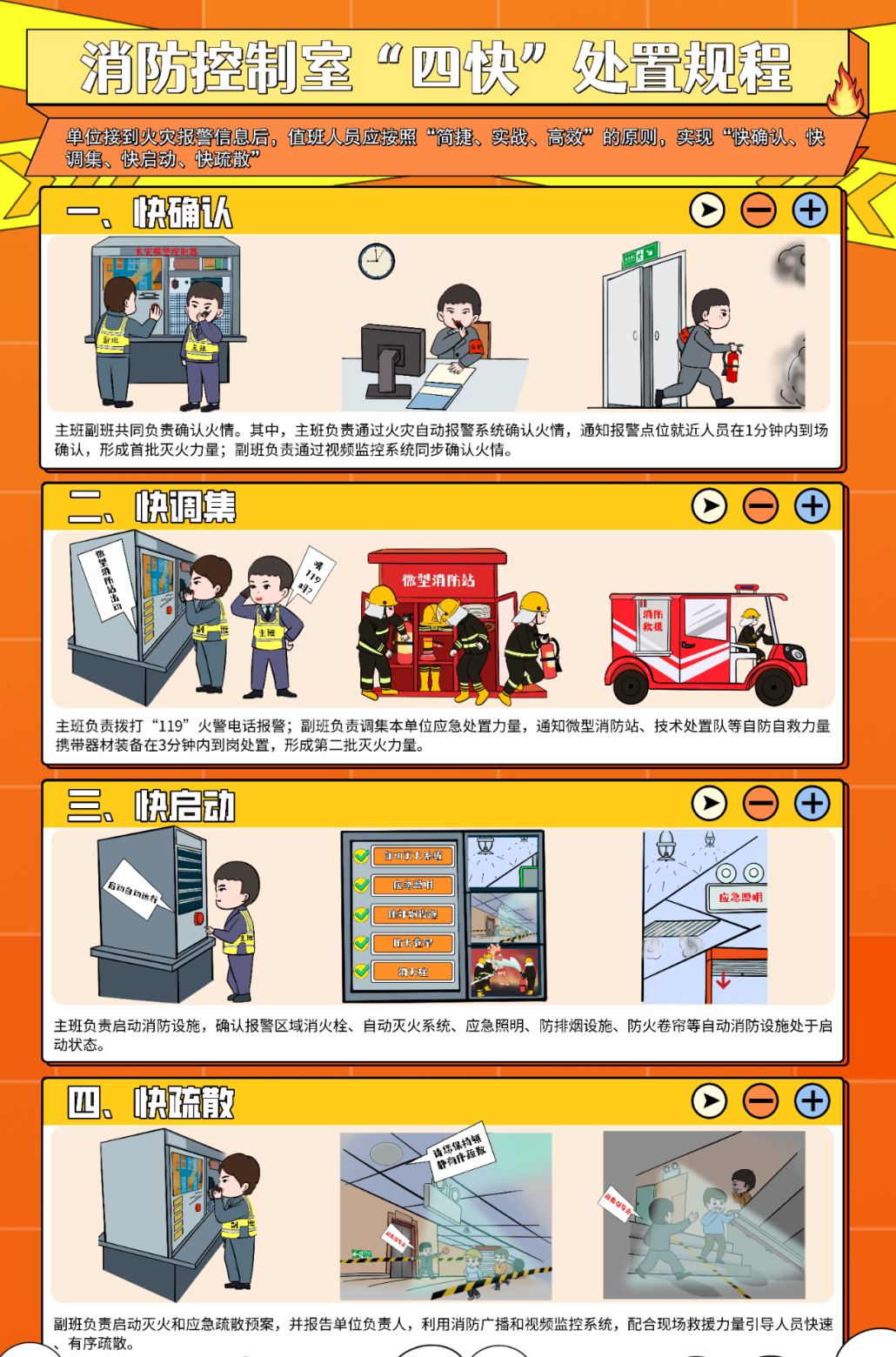 火警處置應遵循快速確認火情、快速調集力量、快速啟動設施、快速組織疏散,進行準確有效處置的原則。