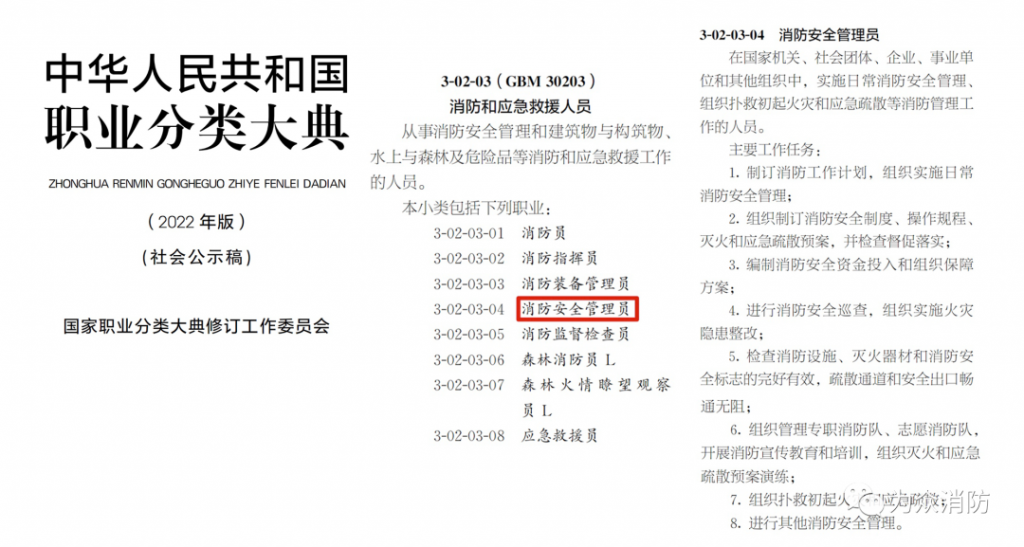 (2)從行業(yè)屬性看。消防安全管理員作為職業(yè)納入新版大典,為全面推進消防工作社會化、職業(yè)化、專業(yè)化提供了重要支撐和重要保障。