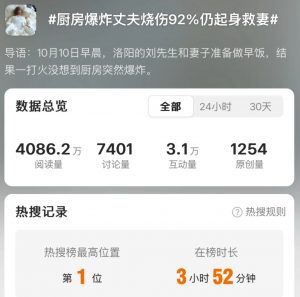 事件梳理:11月4日#廚房爆炸丈夫燒傷92%仍起身救妻#的相關(guān)話題進(jìn)入公眾視野并引發(fā)關(guān)注