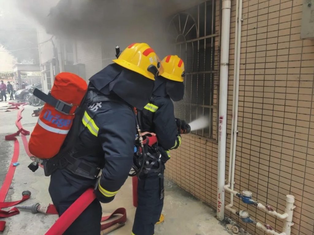 據(jù)了解,火災發(fā)生時小區(qū)消防控制室值班人員發(fā)現(xiàn)火災自動報警系統(tǒng)報火警,值班人員立即前往現(xiàn)場核查,發(fā)現(xiàn)著火屋內(nèi)有2名老人被困,值班人員立即采取緊急措施救出2名被困人員。隨后使用室內(nèi)消火栓對著火區(qū)域進行滅火,并啟動消防應(yīng)急廣播疏散樓內(nèi)住戶。