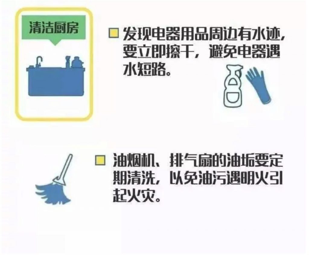 廚房設(shè)備種類繁多,用火用電設(shè)備集中,且廚房較潮濕,使用不當,電氣線路容易造成短路。